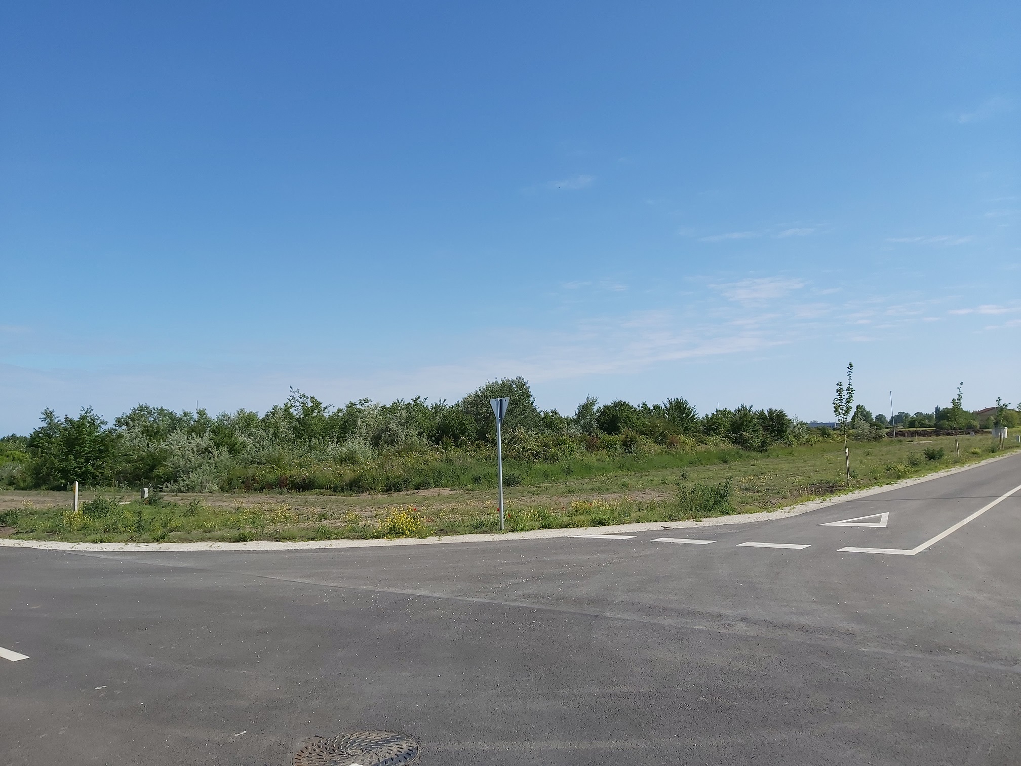 Üres, beépítetlen terület, aszfaltos úthálózattal, közműcsatlakozásokkal a telekhatáron kiépítve.